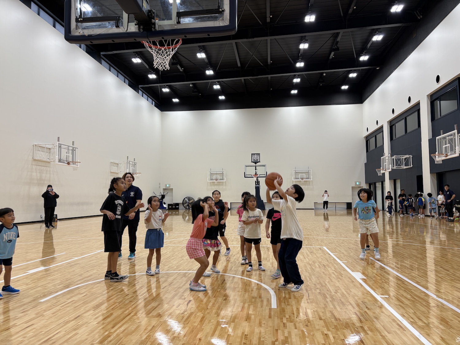 ご夫婦で参加された方や、お父さんとお子さんのペアも多く見られ、家族で楽しめる“はじめてのスポーツ体験”として非常に好評でした。琉球ゴールデンキングス・マスコットキャラクターのゴーディーも登場し、会場をより賑やかに彩りました。