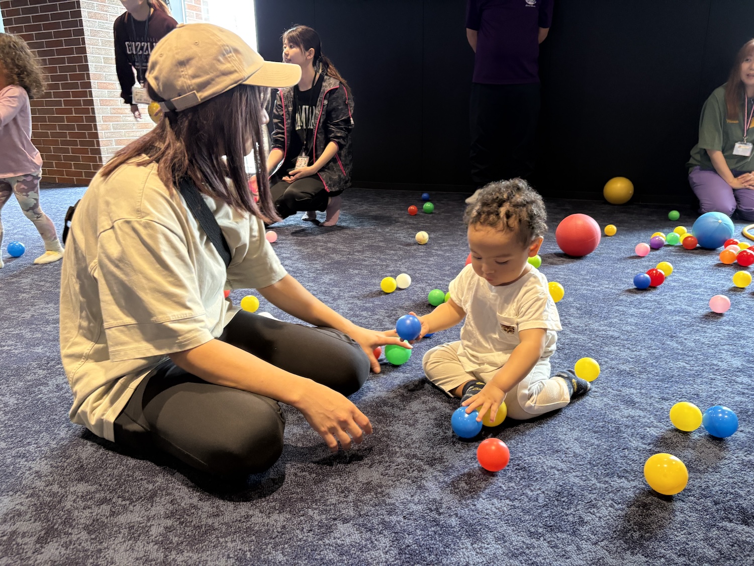 マット遊びやボール遊びなど、親子で自然に触れ合えるメニューを中心に進行し、子どもたちの可愛らしい反応と、保護者の笑顔があふれる温かい時間となりました。