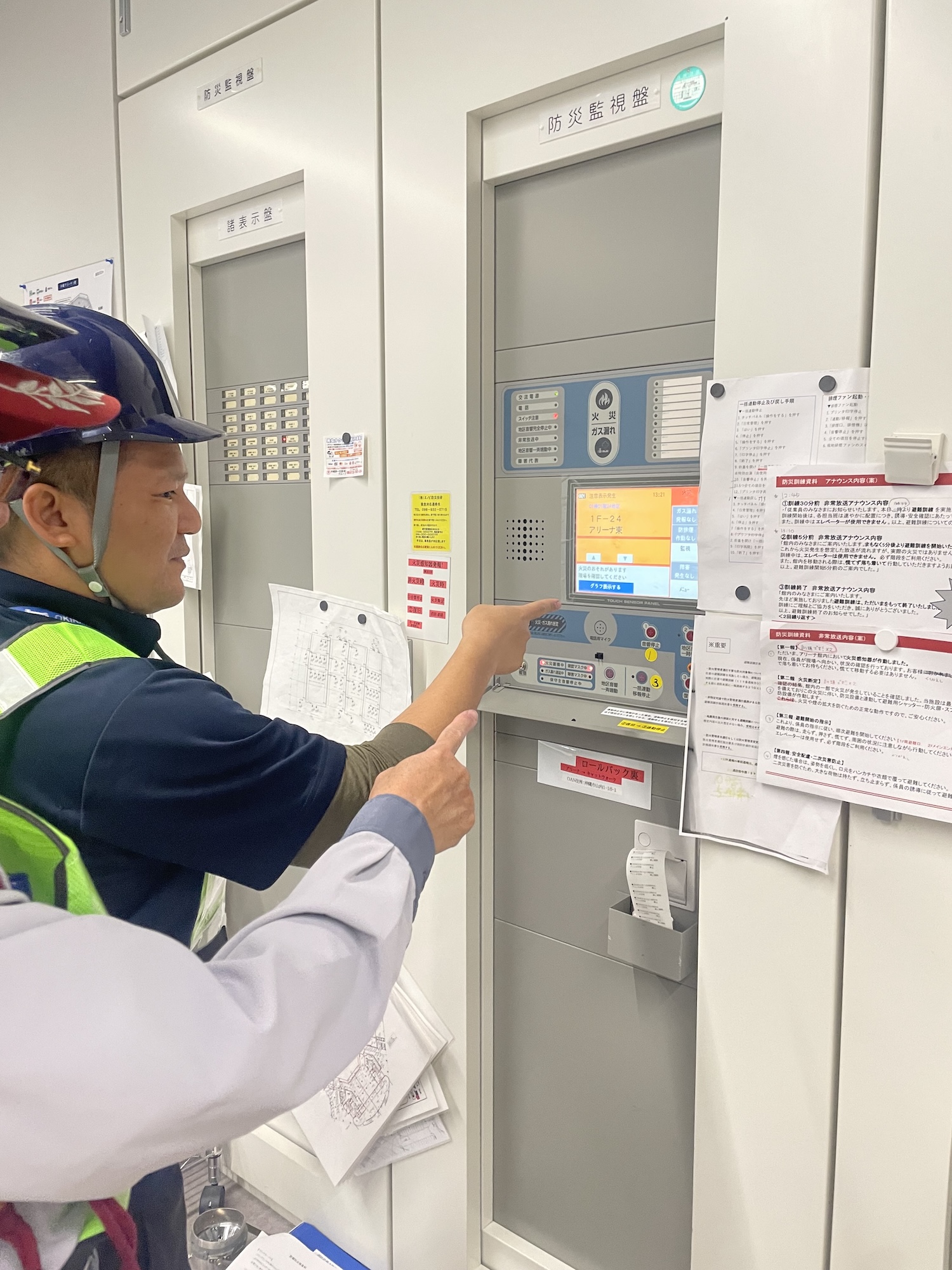 負傷者想定:分電盤付近にスタッフ1名が倒れている