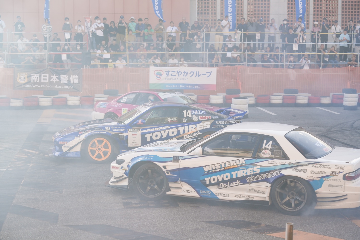 アリーナ外周では、D1「Team TOYO TIRES DRIFT」所属選手による迫力のドリフトデモ走行が行われ、観客席からは歓声が上がりました。